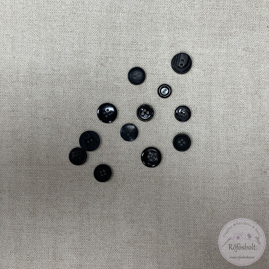 12 darab fekete gomb különböző méretben