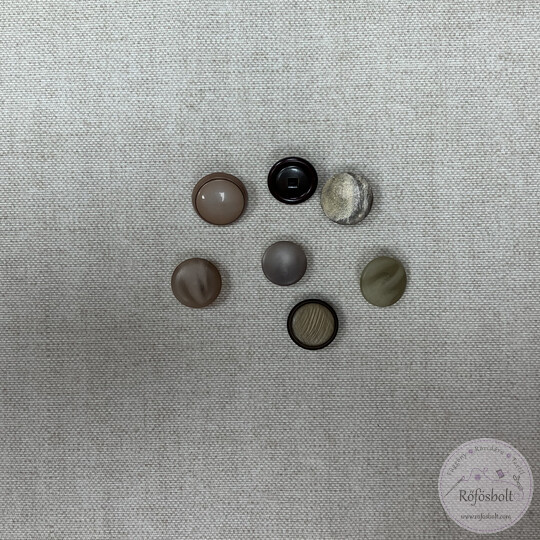 7 darab alul hurkolt drapp gomb különböző méretben
